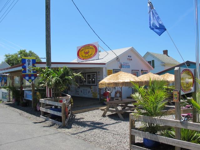 While visiting Tangier Island join us at Four Brothers for lunch or supper. We have a variety of foods that all will enjoy. Just to mention a few: from snacks to Crab Cakes, Crab Melts, to Pizza, Burgers, and other items as well. You'll want to come back for more. There's 64 flavors of solf serve ice cream, slushes, milkshakes, floats, snowballs, toppings avaialbe, and more. Visit us online: http://www.FourBrothersCrabHouse.com |